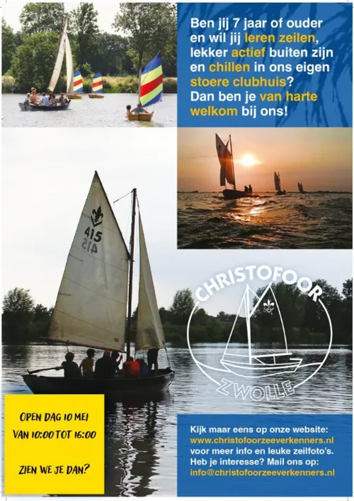 Kinderen vanaf zeven jaar kunnen leren zeilen, actief buiten zijn en chillen in het stoere clubhuis van waterscouting Christofoor in Zwolle. Op zaterdag 10 mei tussen 12.00 uur en 16.00 uur wordt de open dag gehouden aan de Dijkzichtweg 14 in Zwolle.